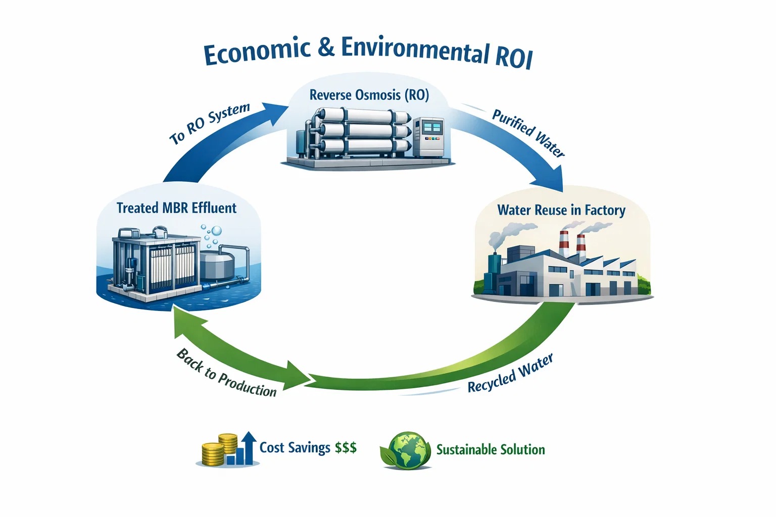 For medicinal- og tekstilindustrien er vand en massiv overheadomkostning. MBR spildevand er så rent, at det kan tjene som direkte foder til Omvendt osmose (RO) .